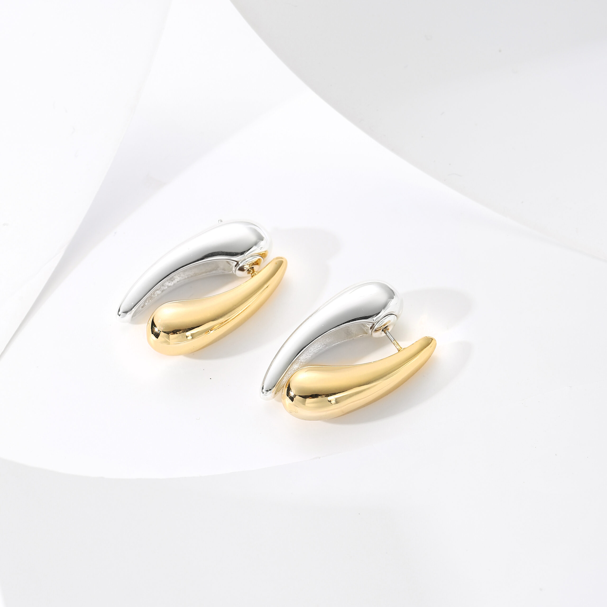 Add a touch of artistic elegance with our Duo Flow Sculpt Earrings, designed with a fluid silhouette that blends contemporary sculpture and minimalist luxury. Crafted in a bold two-tone finish, these earrings combine polished gold and silver curves, creating a striking, asymmetrical balance that draws attention effortlessly.