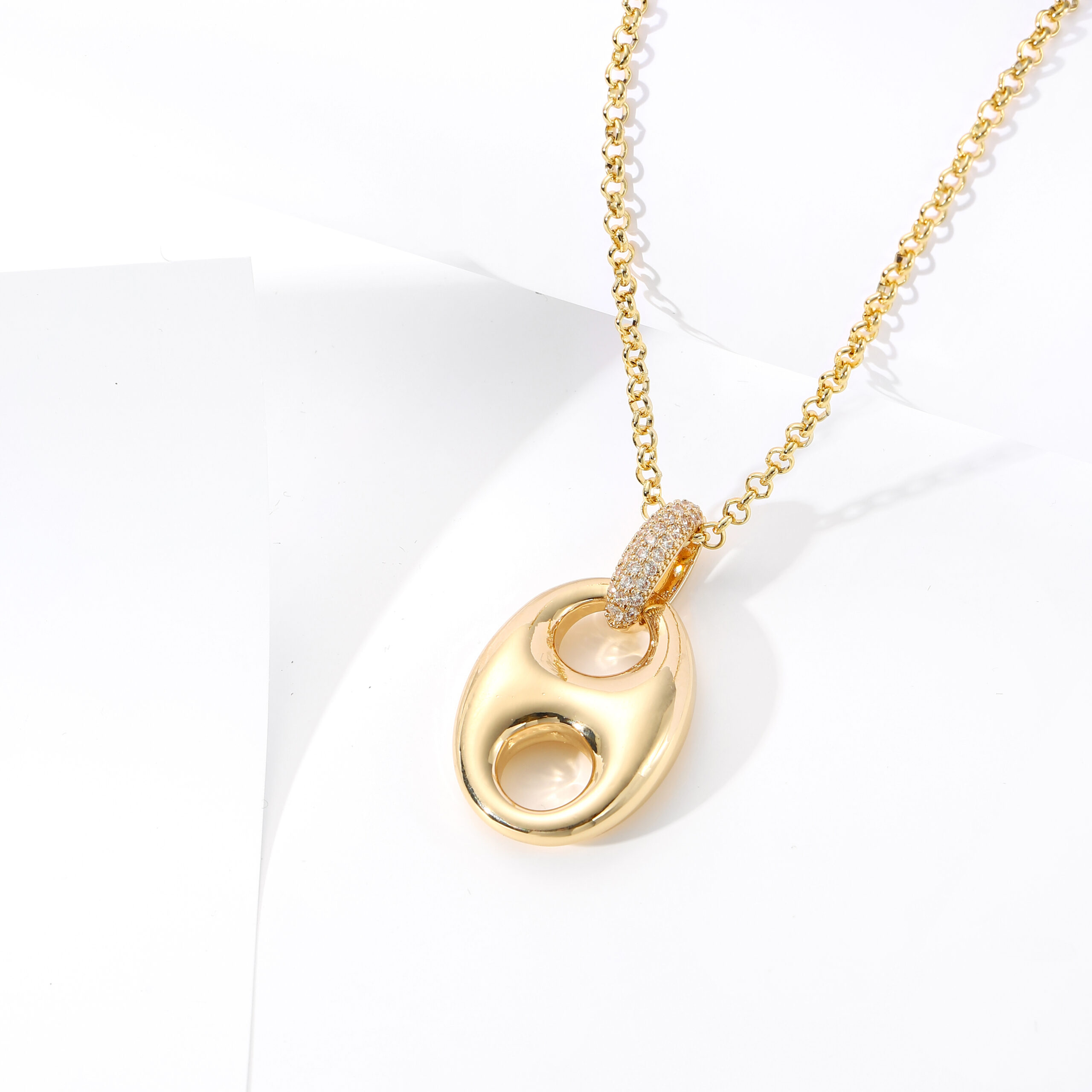 Discover timeless modernity with our Eclipse Oval Pendant Necklace, a sculptural piece inspired by the harmony of curves and negative space. Designed with a smooth, mirror-finish surface, this pendant captures light beautifully as it moves with you.