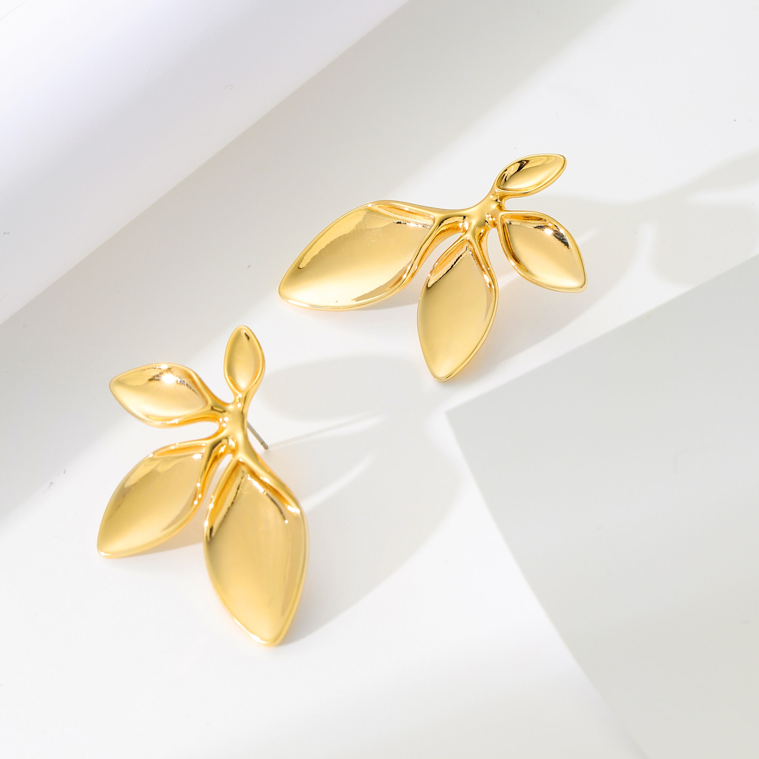 Inspired by the graceful silhouette of fresh leaves, the Golden Leaf Silhouette Earrings feature smooth, sculptural petals forged in high-shine gold plating. Each curve captures light beautifully, bringing refined shine to every angle.